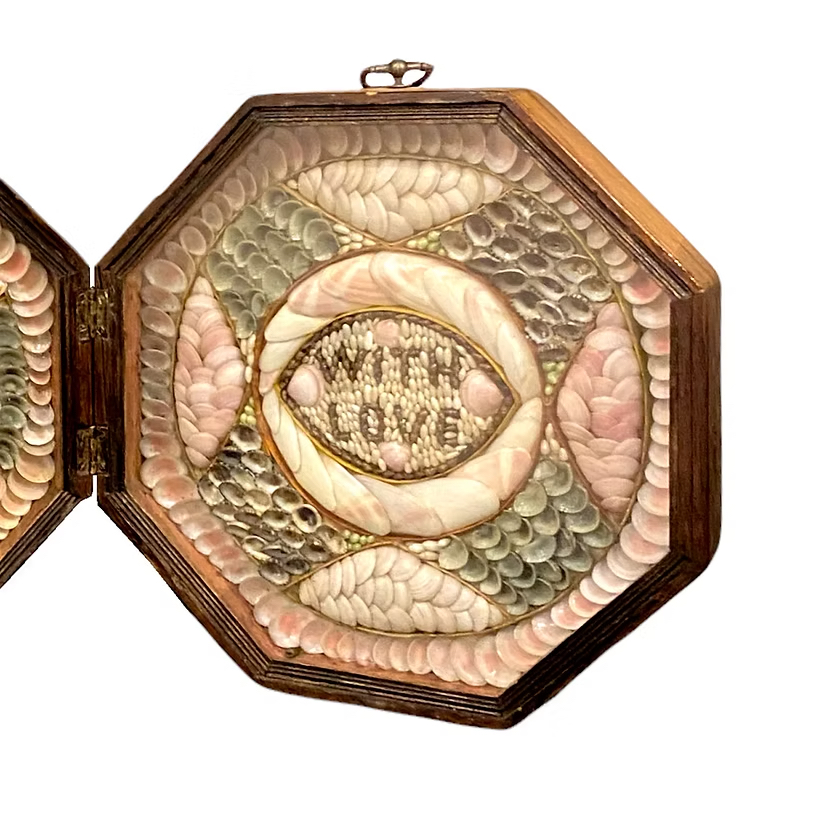 The designs included hearts, flowers, and words to demonstrate the depth of love the seafaring men felt for their homes and families. In a dangerous and uncertain world, the Sailor’s Valentines were more than souvenirs, they were proof of a man’s devotion whle far away and his safe return, love letters written in shells.