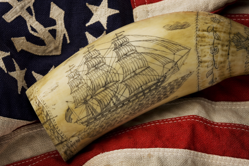 Sailors had long hours at sea to think about their loved ones and miss them. A port of call meant a chance to shop for gifts to bring home. Some of the items that sailors brought included scrimshaw–carved whale bone decorated with ships or love messages–often carved themselves during long hours on shipboard.